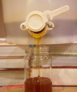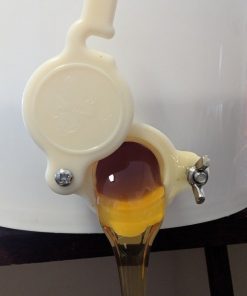 Honey buckets are essential during the extracting and filtering process when honey may be transferred from one container to another. They are also a great way to store honey before bottling. This five-gallon honey bucket consists of a standard plastic five-gallon pail with a handle, plastic lid, and honey gate.